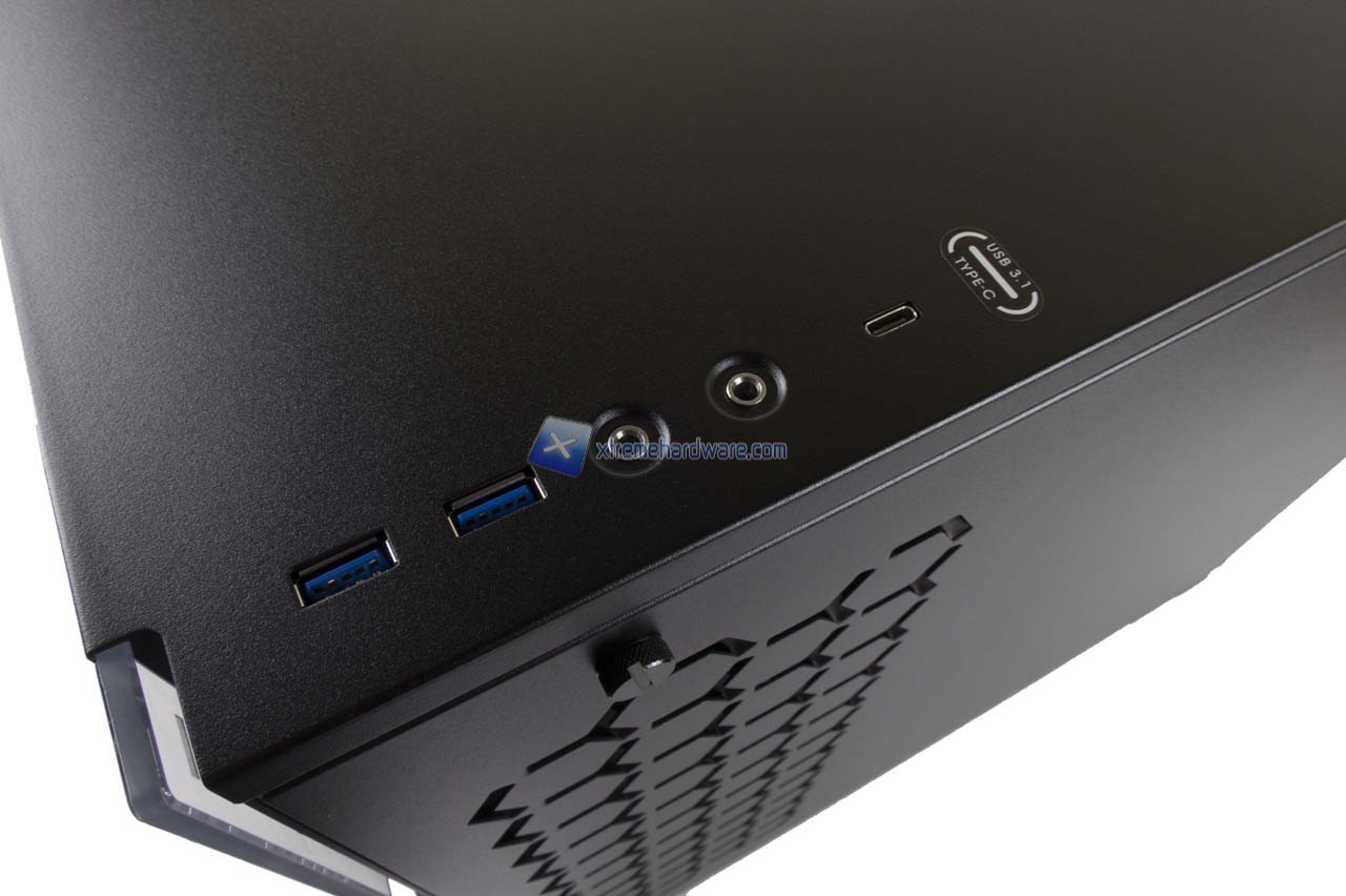 Dal pannello frontale possiamo passare velocemente al pannello superiore anche questo rigorosamente chiuso per offrire un aspetto quanto più pulito e elegante a scapito di buona parte dell’aereazione possibile.